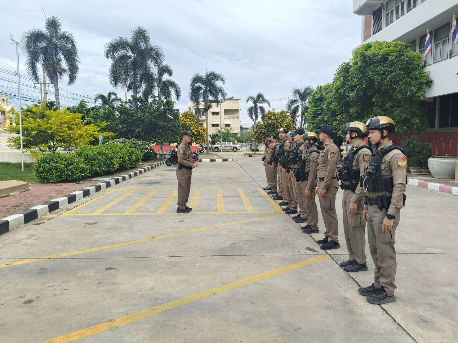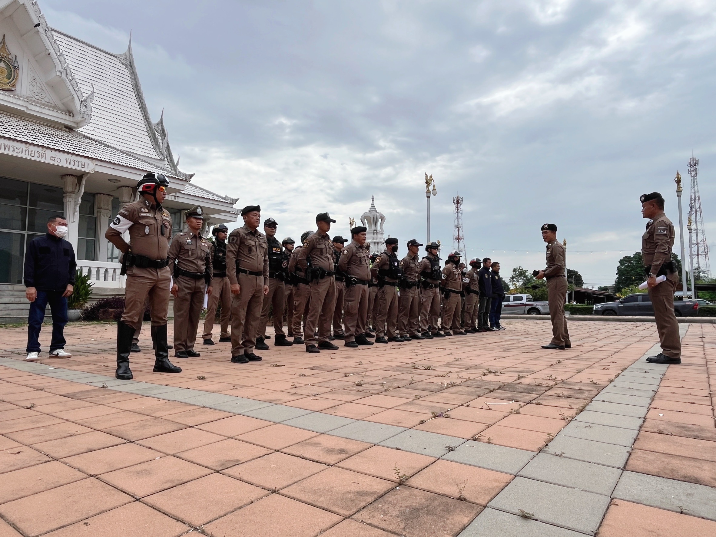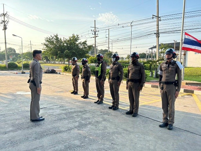 อบรม ปล่อยแถว ตรวจเครื่องแต่งกาย อุปกรณ์ประจำกาย ตรวจความพร้อมก่อนปฏิบัติหน้าที่
