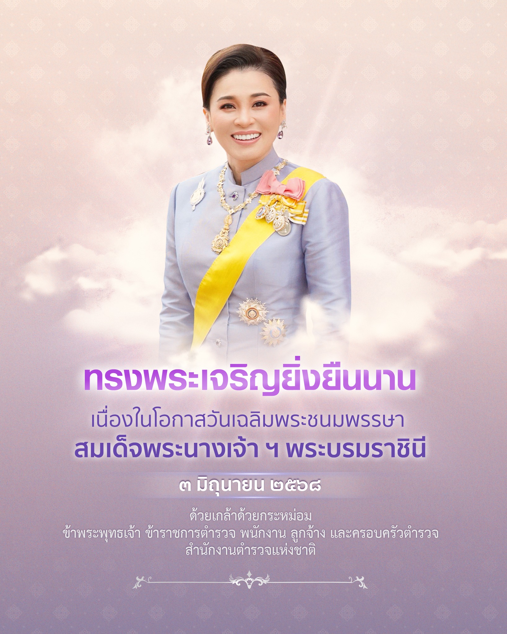 ทรงพระเจริญ“ ๓ มิถุนายน ๒๕๖๘ เนื่องในโอกาสวันเฉลิมพระชนมพรรษา สมเด็จพระนางเจ้าฯ พระบรมราชินี