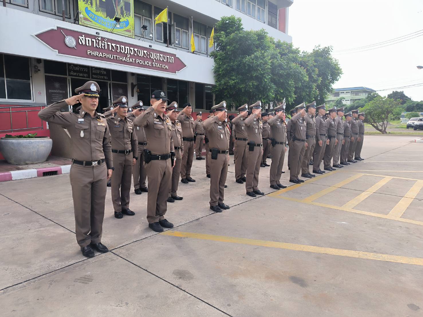 ทุกวันจันทร์ เวลา 08.00 น. พ.ต.อ.วีระวุฒิ ดำสุวรรณ ผกก.สภ.พระพุทธบาท , พ.ต.ท.บุญเกื้อ ดาราตระกูล รอ