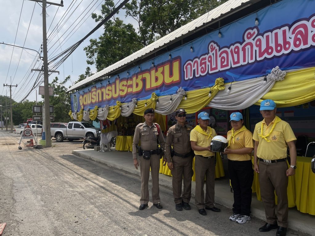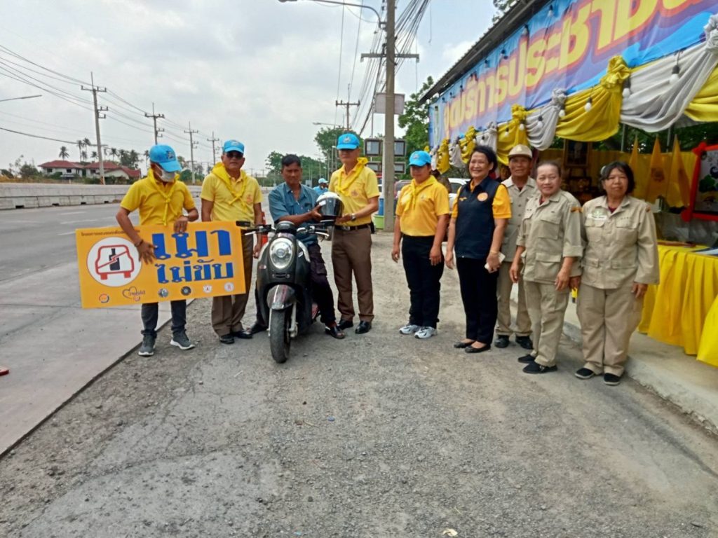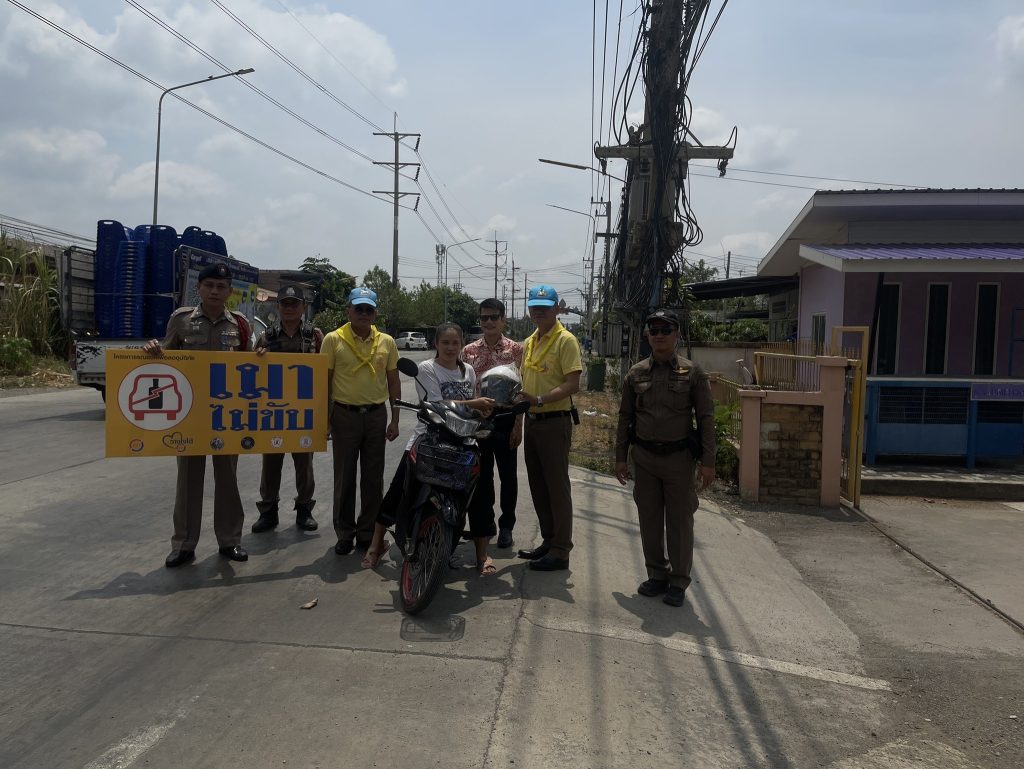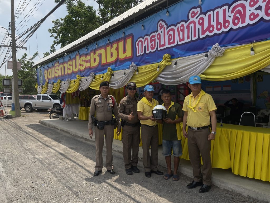 ร่วมกิจกรรมแจกหมวกนิรภัย เพื่อการขับขี่ปลอดภัย สวมหมวกนิรภัยป้องกันและลดอุบัติเหตุจราจรทางบกในช่วงเทศกาลสงกรานต์