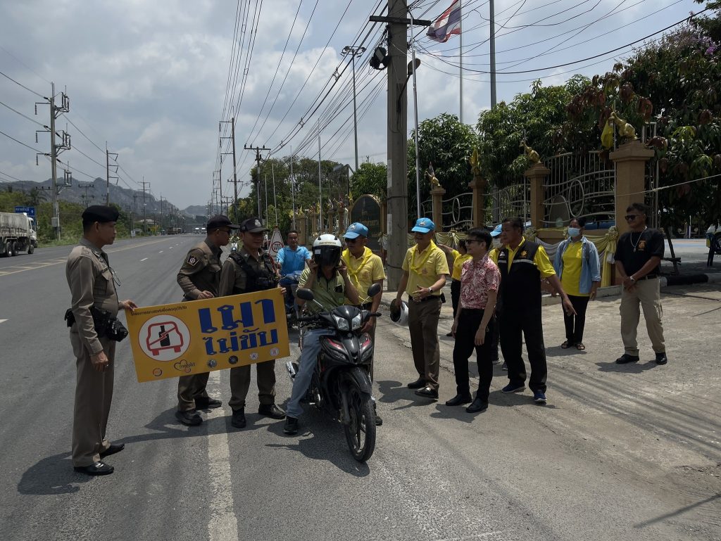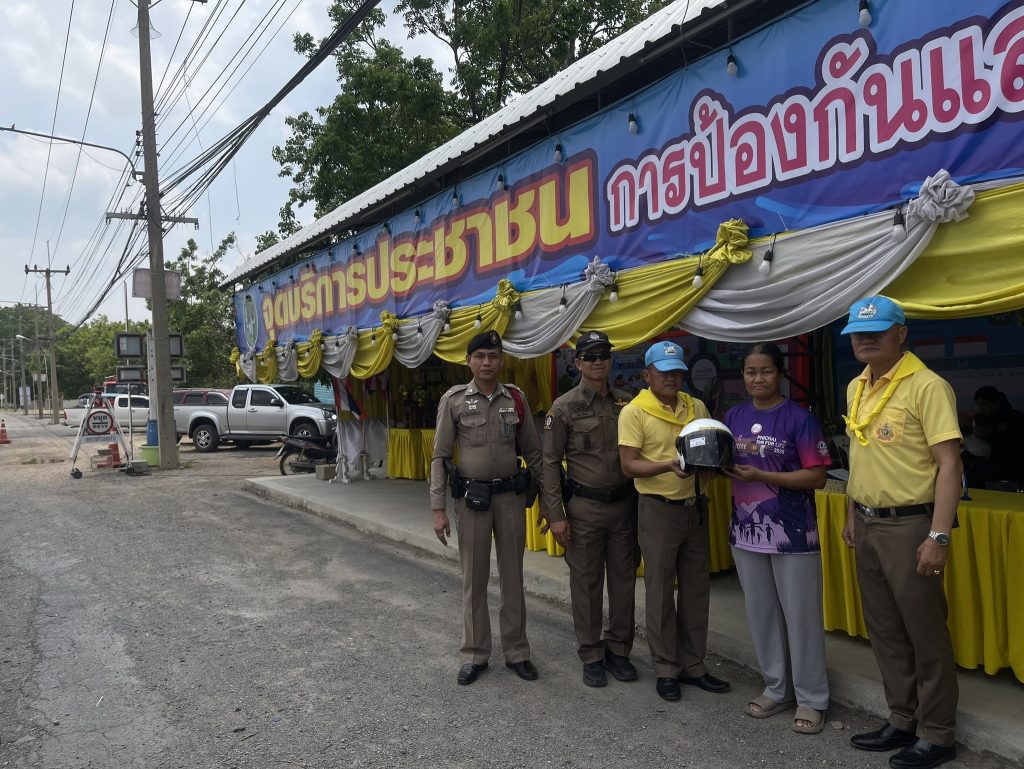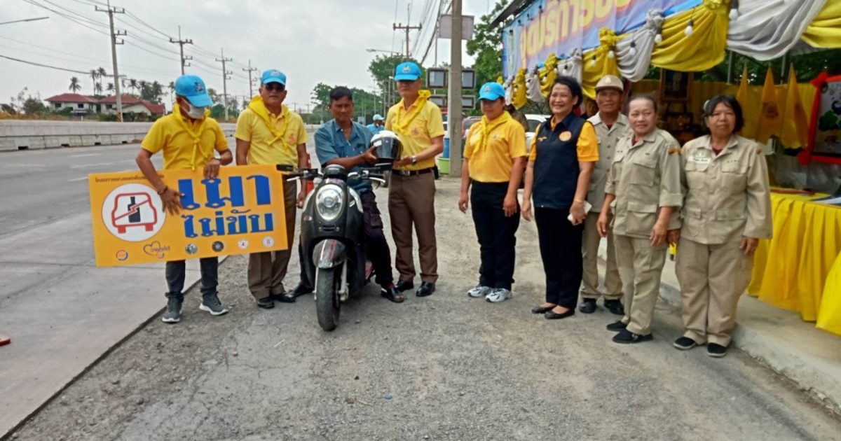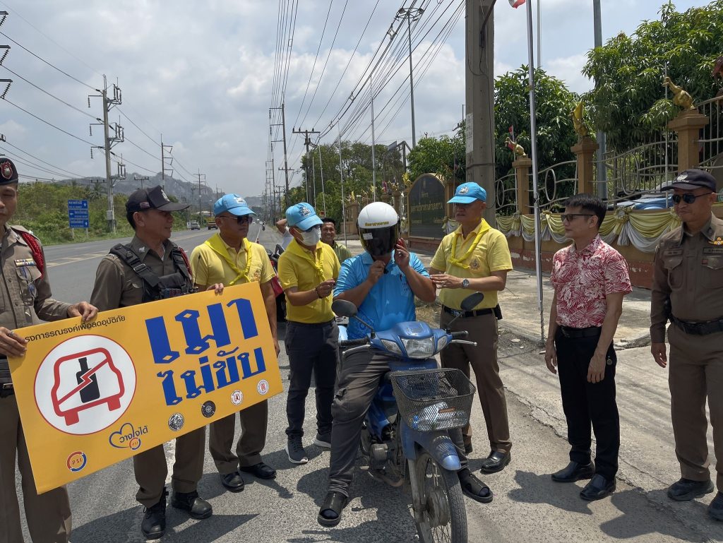 ร่วมกิจกรรมแจกหมวกนิรภัย เพื่อการขับขี่ปลอดภัย สวมหมวกนิรภัยป้องกันและลดอุบัติเหตุจราจรทางบกในช่วงเทศกาลสงกรานต์