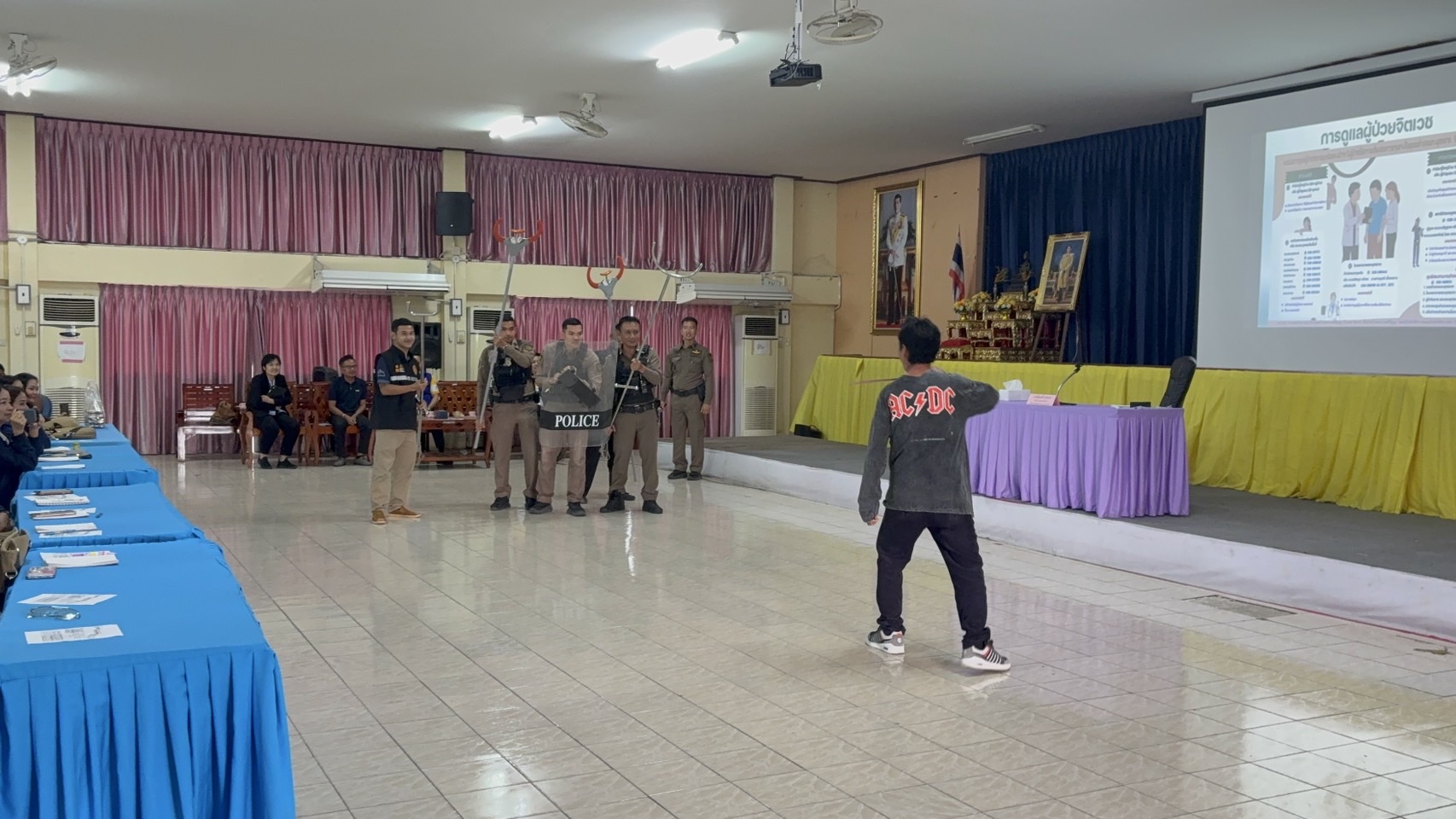 • ← เก่ากว่า งานป้องกันปราบปราม เป็นวิทยากรบรรยายให้ความรู้ในการใช้ยุทธวิธีการใช้ไม้ง่ามประกอบโล่ ระงับเหตุบุคคลคลุ้มคลั่ง