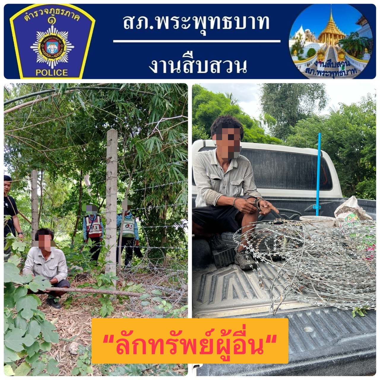 🚨จับกุมผู้ต้องหา 1 รายพร้อมของกลาง ลวดหนาม ความยาวประมาณ 20 เมตร จำนวน 1 ม้วน