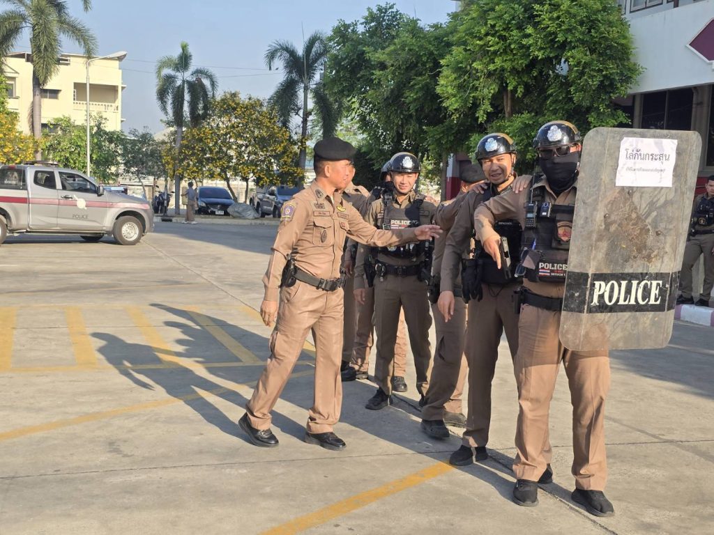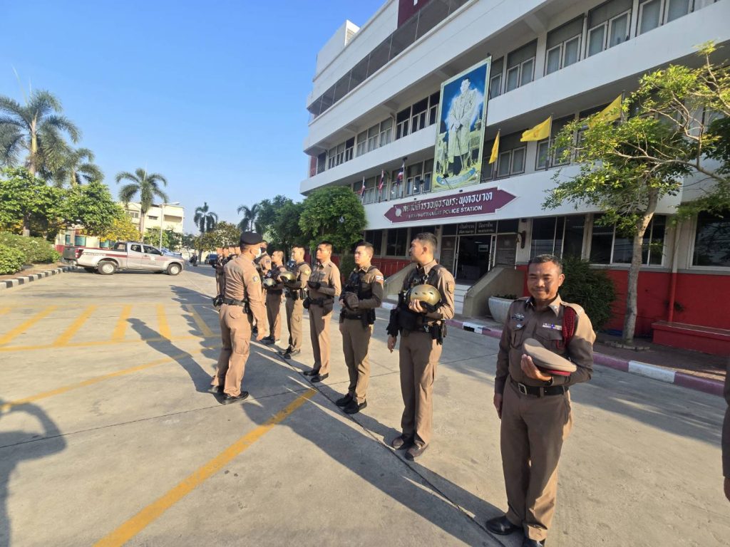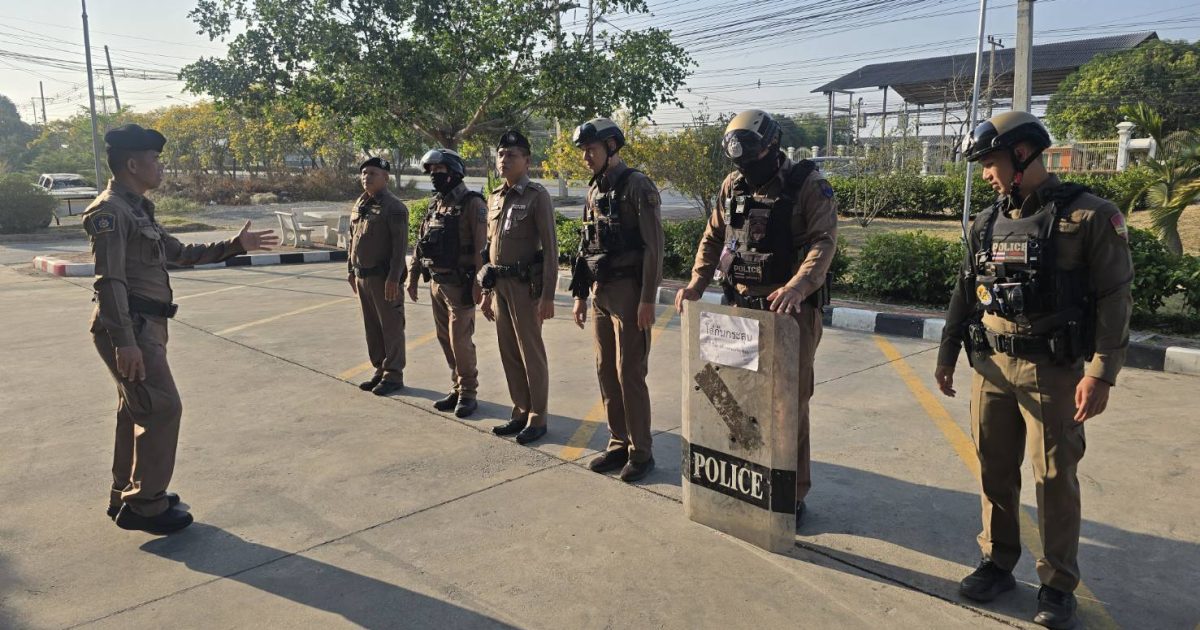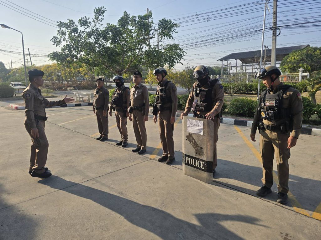 ตรวจความพร้อม การแต่งกาย อุปกรณ์ และทบทวนยุทธวิธี งานป้องกันปราบปราม