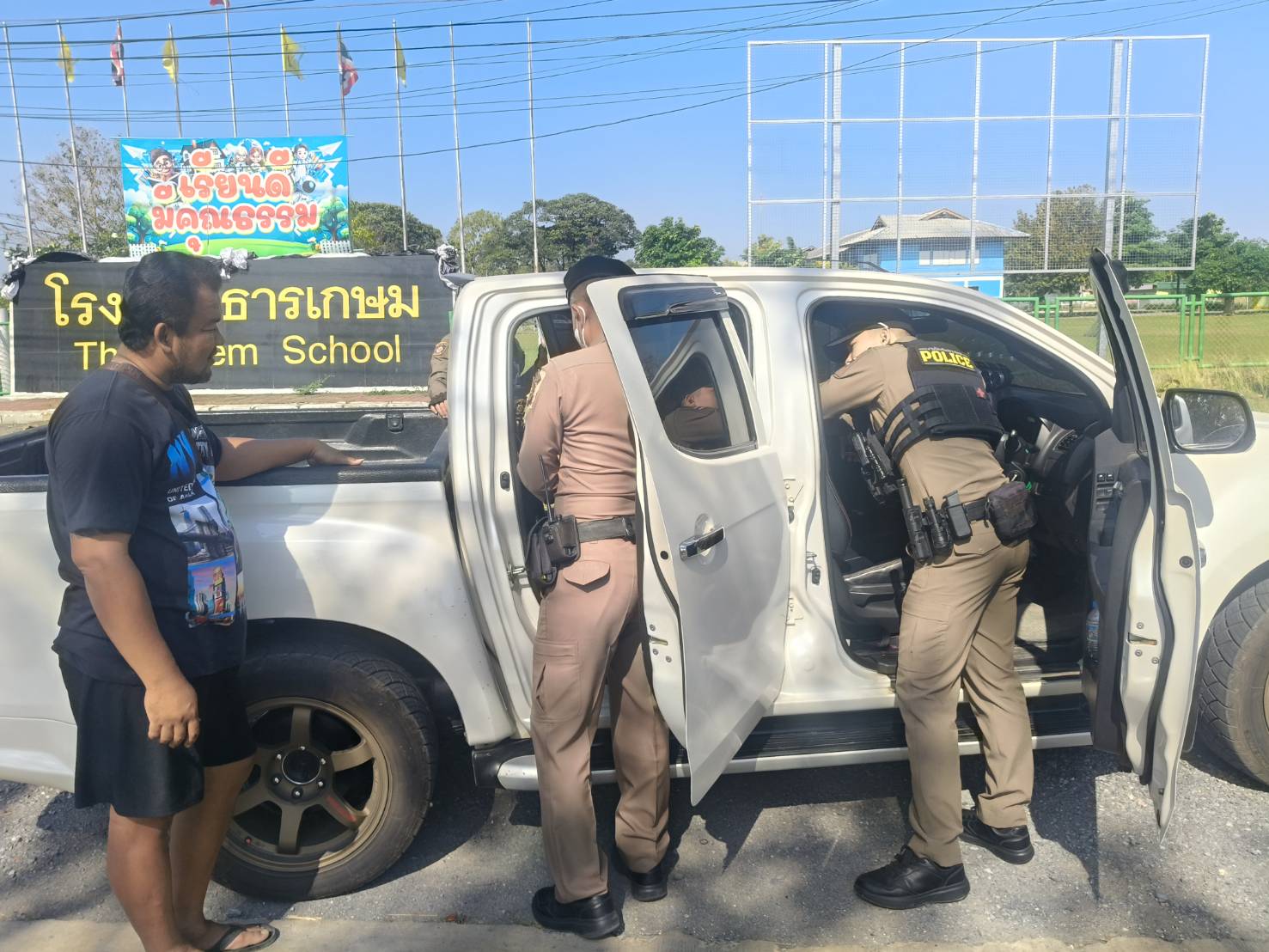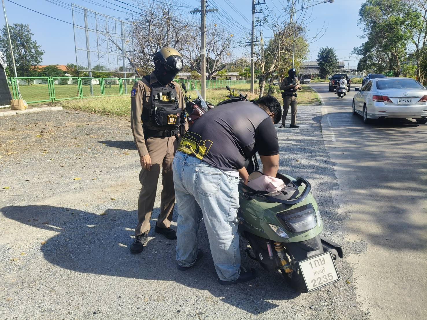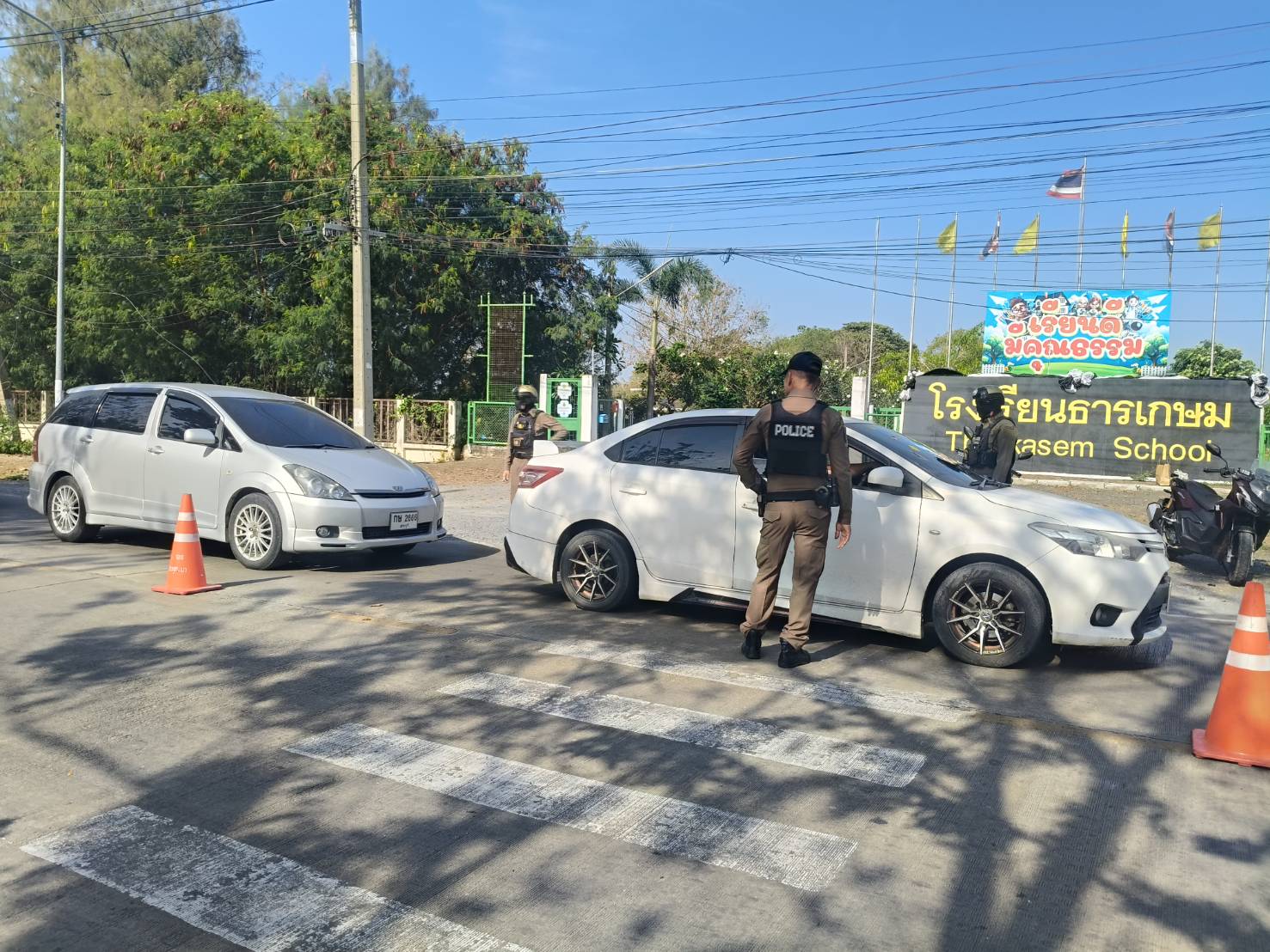 สภ.พระพุทธบาท ภ.จว.สระบุรี ภายใต้การอำนวยการของ พ.ต.อ.วีระวุฒิ ดำสุวรรณ ผกก.สภ.พระพุทธบาท,พ.ต.ท.ณัฏฐพล ศรีวิเชียร รอง ผกก.ป.สภ.พระพุทธบาท สั่งการให้ พ.ต.ต.มีชัย ดีสม สวป.สภ.พระพุทธบาท,ร.ต.ท.สันทัด ทับมาลา รอง สว.(จร) สภ.พระพุทธบาท ปฏิบัติหน้าที่ร้อยเวร 20 พร้อมกำลังประกอบด้วย สายตรวจรถยนต์ 201,สายตรวจรถจักรยานยนต์ 121,สายตรวจรถจักรยานยนต์ 122 ร่วมกันตั้งจุดสกัดตรวจค้นบุคคลและยานพาหนะต้องสงสัย ระหว่างเวลา 09.00 -10.00 น. เพื่อป้องกันอาชญากรรม จับกุมผู้กระทำผิดกฎหมาย บริเวณหน้าโรงเรียนธารเกษม หมู่ที่ 12 ถ.สายเอก ต.ธารเกษม อ.พระพุทธบาท จ.สระบุรี ตรวจค้นบุคคล ยานพาหนะ รถยนต์ และรถจักรยานยนต์ต้องสงสัย ไม่พบสิ่งผิดกฎหมาย เหตุการณ์ปกติ