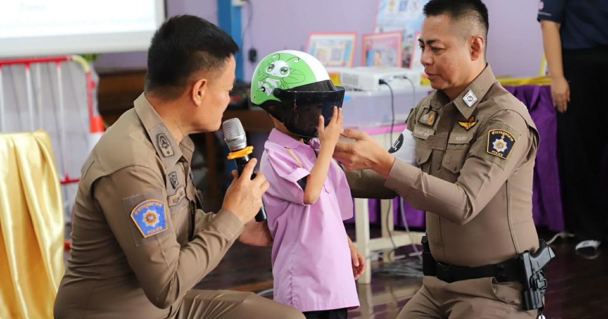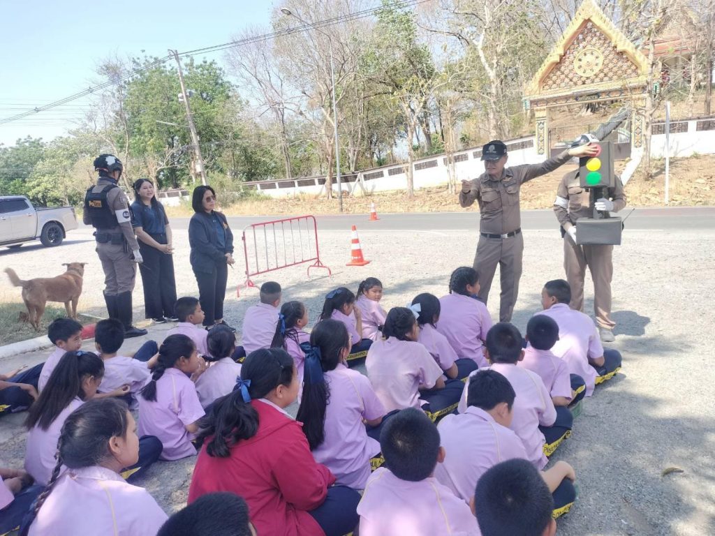 ตำรวจพระพุทธบาทให้ความรู้กฎหมายจราจรและสาธิตข้ามทางม้าลายแก่นักเรียน