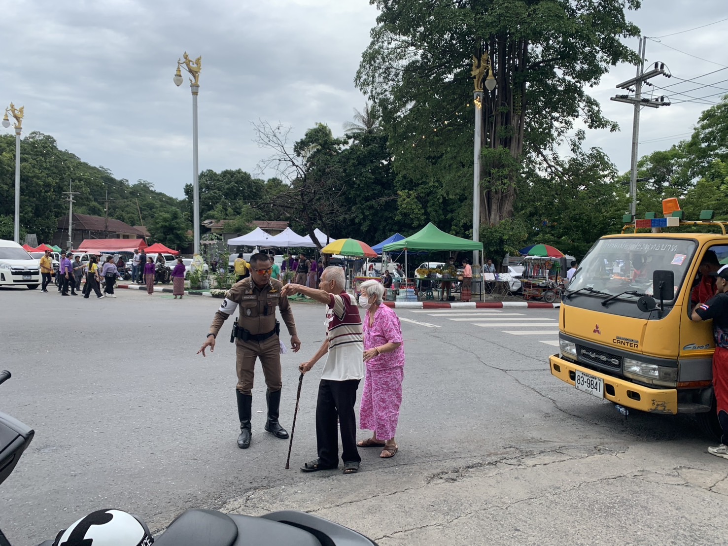 🔰 ว.4 อำนวยความสะดวกการจราจรในงานประเพณีตักบาตรดอกเข้าพรรษา ประจำปี 2568 บริเวณวงเวียนธรรมจักร พบผู้สูงอายุได้เดินเข้ามาสอบถามจึงได้ให้การดูแลและช่วยเหลือ