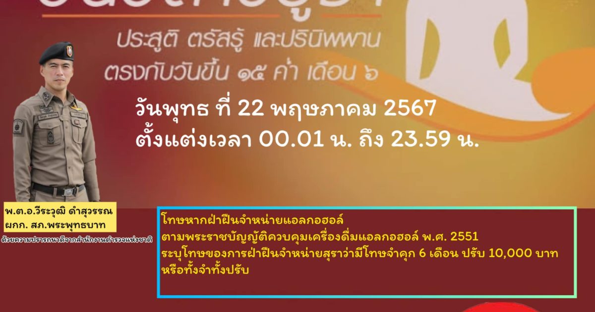 ประชาสัมพันธ์ขอความร่วมมือ งดจำหน่ายเครื่องดื่มแอลกอฮอล์ ในวันสำคัญทางศาสนา