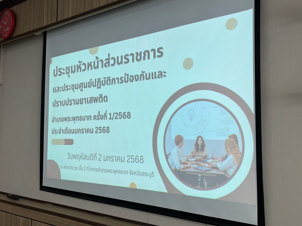 ✅ ร่วมประชุมหัวหน้าส่วนราชการและประชุมศูนย์ปฏิบัติการป้องกันและปราบปรามยาเสพติดอำเภอพระพุทธบาท ครั้งที่ 1/2568 ประจำเดือนมกราคม 2568 ณ ห้องประชุม ชั้น 2 ที่ว่าการอำเภอพระพุทธบาท โดยมีนายมนัสพันธุ์ ดอนก้อนไพร นายอำเภอพระพุทธบาท เป็นประธานพร้อมด้วยหัวหน้าส่วนราชการ, หัวหน้าหน่วยงาน, รัฐวิสาหกิจ, ผู้บริหารสถานศึกษา, ผู้แทนภาคเอกชน,กำนัน ฯลฯ เข้าร่วมการประชุมดังกล่าว