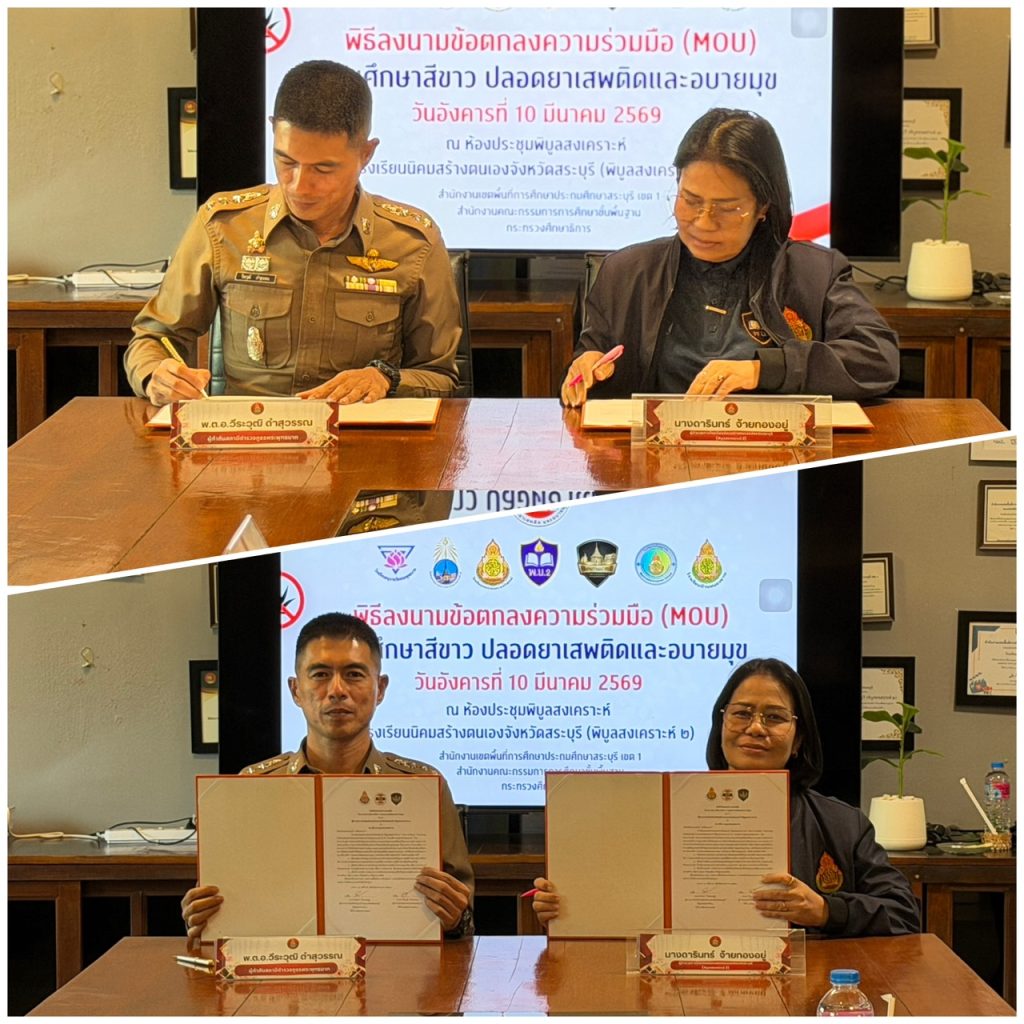 ผกก.สภ.พระพุทธบาท ร่วมลงนาม MOU สถานศึกษาสีขาว ปลอดยาเสพติดและอบายมุข