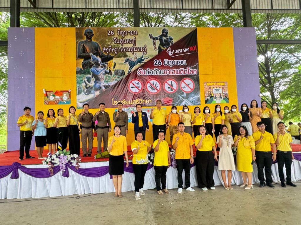 ร่วมพิธีเปิดกิจกรรมวันต่อต้านยาเสพติดโลก ( 26 มิถุนายน) ตามโครงการสถานศึกษาสีขาวปลอดยาเสพติดและอบายมุข