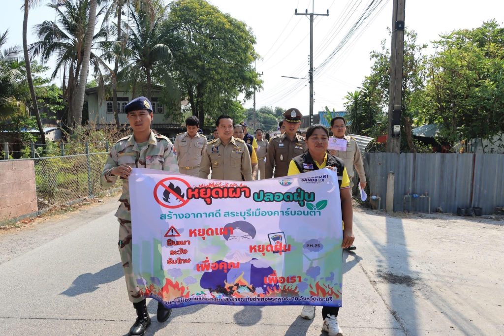 วันนี้( 3 ก.พ.68) เวลา 09.30 น. พ.ต.อ.วีระวุฒิ ดำสุวรรณ ผกก.สภ.พระพุทธบาท ร่วมกับ ฝ่ายปกครองอำเภอพระพุทธบาท นำโดย นายมนัสพันธ์ ดอนก้อนไพร นายอำเภอพระพุทธบาท/ผู้อำนวยการกองอำนวยการป้องกันและบรรเทาสาธารณภัยอำเภอพระพุทธบาท, ปลัดอำเภอพระพุทธบาท, กำนัน-ผู้ใหญ่บ้าน ตำบลพุกร่าง ,อส.,เกษตรอำเภอพระพุทธบาท ,นายกเทศมนตรีตำบลพุกร่าง ร่วมกิจกรรมรณรงค์ เคาะประตูบ้าน “หยุดเผา หยุดฝุ่น เพื่อคุณ เพื่อเรา” ในพื้นชุมชนและแปลงเกษตรในพื้นที่ ต.พุกร่าง อ.พระพุทธบาท จว.สระบุรี โดยประชาสัมพันธ์ให้ประชาชนและเกษตรกร ตระหนักถึงสถานการณ์และอันตรายของฝุ่นละอองขนาดเล็ก( PM2.5 )วิธีการรับมือและเตรียมความพร้อมเมื่อต้องเจอกับฝุ่นขนาดเล็ก(PM2.5)รวมถึงมาตรการของภาครัฐในการควบคุมอย่างเข้มงวด เกี่ยวกับการป้องกันและแก้ไขปัญหาไฟป่า การเผาในที่โล่ง ที่ก่อให้เกิดปัญหาหมอกควันและฝุ่นละอองขนาดเล็ก (PM2.5) ซึ่งส่งผลกระทบต่อสุขภาพของประชาชนและสิ่งแวดล้อม โดยได้เน้นย้ำประชาชนและเกษตรกรห้ามเผาอย่างเด็ดขาด ทั้งนี้ พ.ต.อ.วีระวุฒิ ฯ ผกก.สภ.พระพุทธบาท ได้ชี้แจงข้อกฎหมายที่เกี่ยวข้องให้ประชาชนได้รับทราบ และกำชับหากมีการฝ่าฝืนเจ้าหน้าที่จะดำเนินคดีตามกฎหมาย..