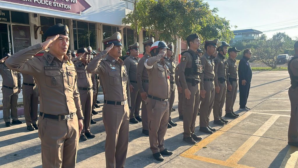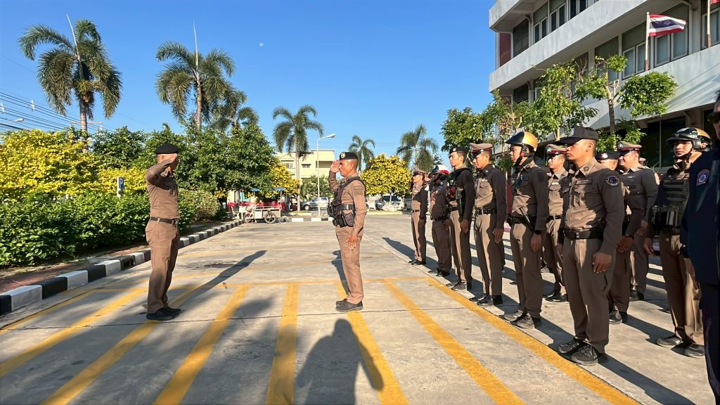 1. ตรวจจำนวน เคารพธงชาติ สวดมนต์ไหว้พระ กล่าวคำปฏิญาณ อุดมคติตำรวจ