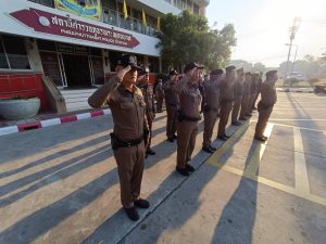 • ← เก่ากว่า เคารพธงชาติ สวดมนต์ไหว้พระ กล่าวคำปฏิญาณ อุดมคติตำรวจ ตรวจเครื่องแต่งกาย /อุปกรณ์/ทรงผม ตรวจความพร้อมก่อนปฎิบัติหน้าที่