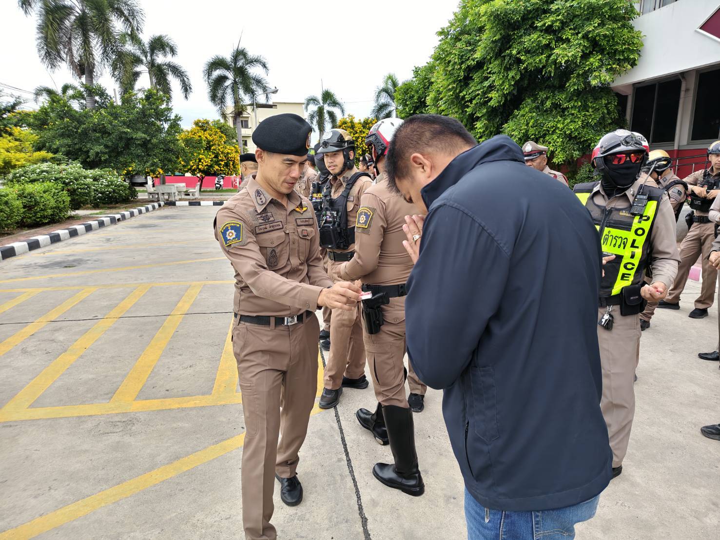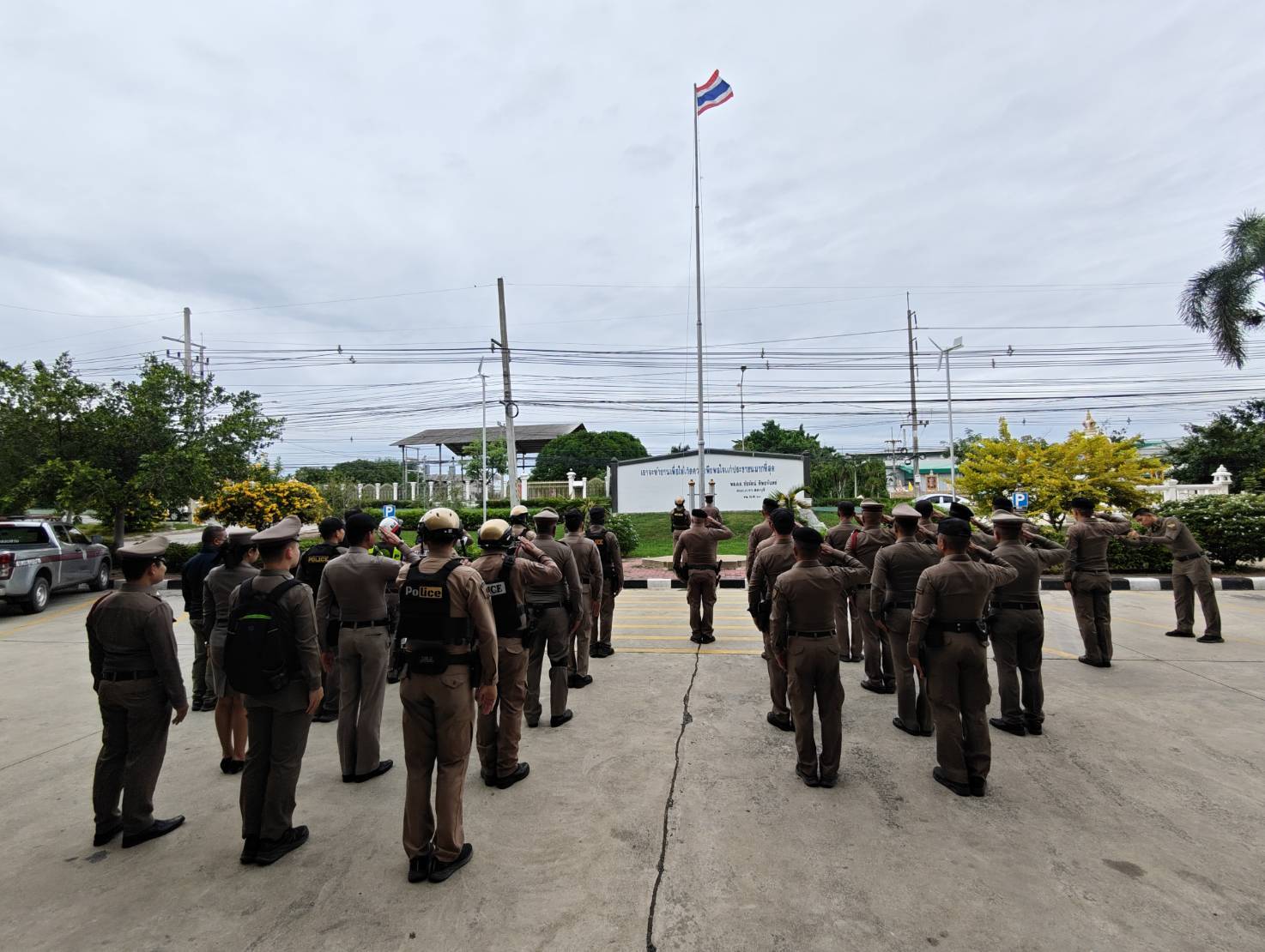 – ตรวจจำนวน เคารพธงชาติ สวดมนต์ไหว้พระ กล่าวคำปฏิญาณ อุดมคติตำรวจ