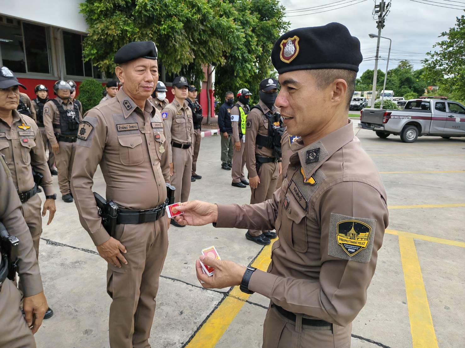 – แจกวัตถุมงคล เพื่อเป็นขวัญกำลังใจในการปฏิบัติหน้าที่ให้แก่ข้าราชการตำรวจ
