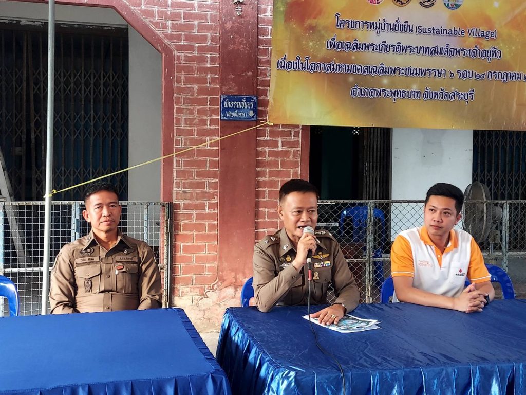 ร่วมโครงการหมู่บ้านยั่งยืน (Sustainable Village) เพื่อเฉลิมพระเกียรติพระบาทสมเด็จพระเต้าอยู่หัว เนื่องในโอกาสมหามงคลเฉลิมพระชนมพรรษา 6 รอบ โดยมีการบรรยายในหัวข้อเกี่ยวกับยาเสพติด ,การป้องกันอุบัติเหตุทางถนน,การป้องกันเกี่ยวกับอาชญากรรมในเขตพื้นที่ และการป้องกันการถูกหลอกลวงจากแก๊งค์คอลเซ็นเตอร์ ในพื้นที่ อ.พระพุทธบาท จ.สระบุรี โดยมีฝ่ายปกครอง,สาธารณสุข,หน่วยงานที่เกี่ยวข้องเข้าร่วมในโครงการดังกล่าว
