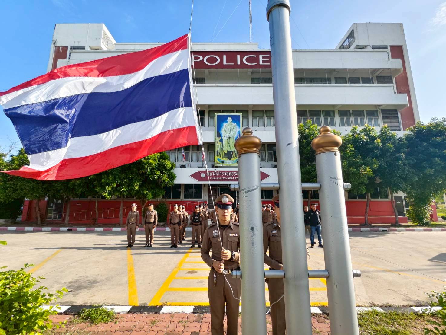 ข้าราชการตำรวจ เข้าแถวเคารพธงชาติ ตรวจความพร้อมก่อนปฏิบัติหน้าที่ทุกวันจันทร์ วันที่ 20 ตุลาคม 2568
