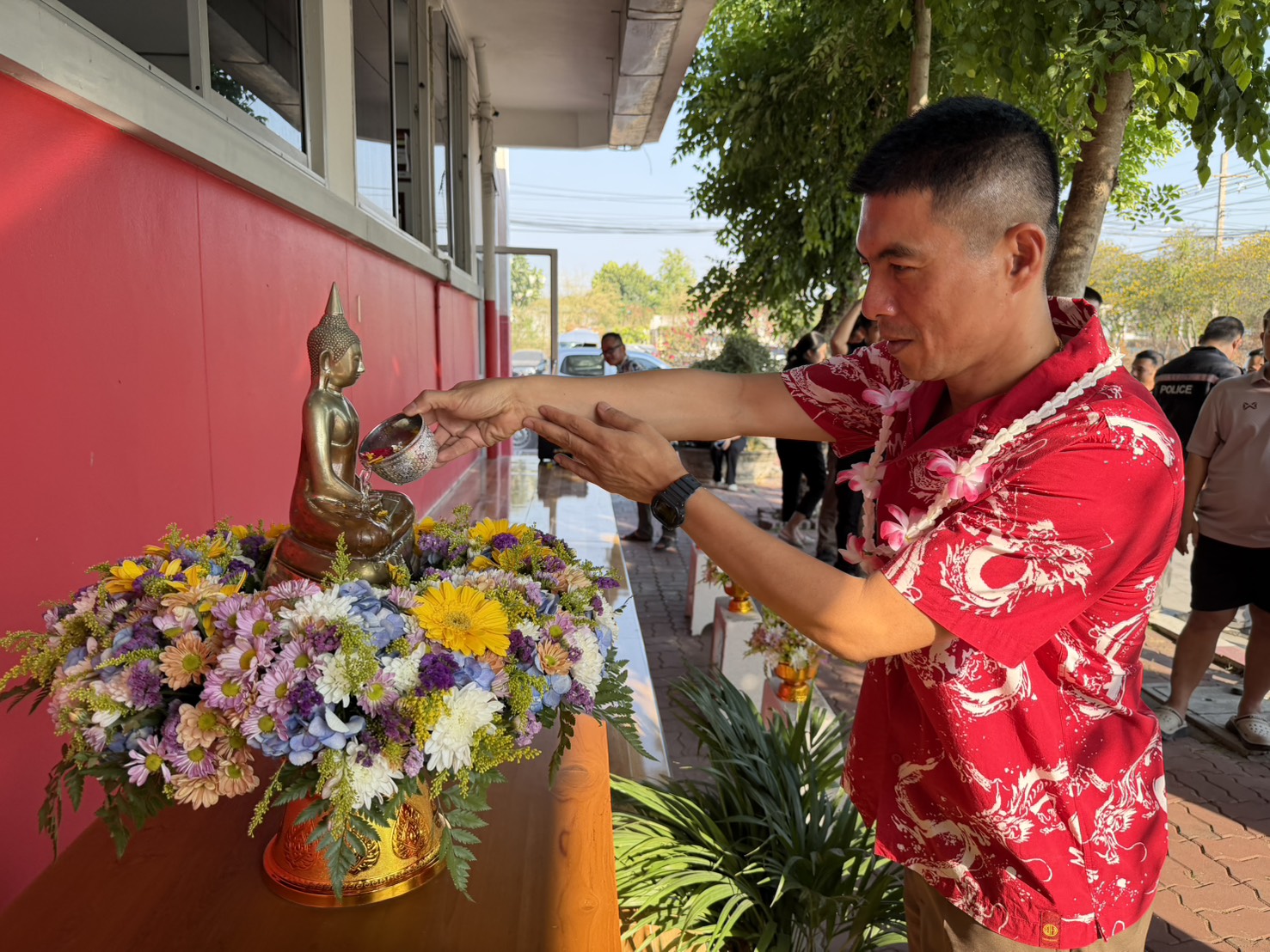 สภ.พระพุทธบาท จัดพิธีสรงน้ำพระ และรดน้ำดำหัวขอพรจากผู้บังคับบัญชา เพื่อสืบสานประเพณีอันดีงามของไทย และสร้างขวัญกำลังใจแก่ข้าราชการตำรวจ 💦