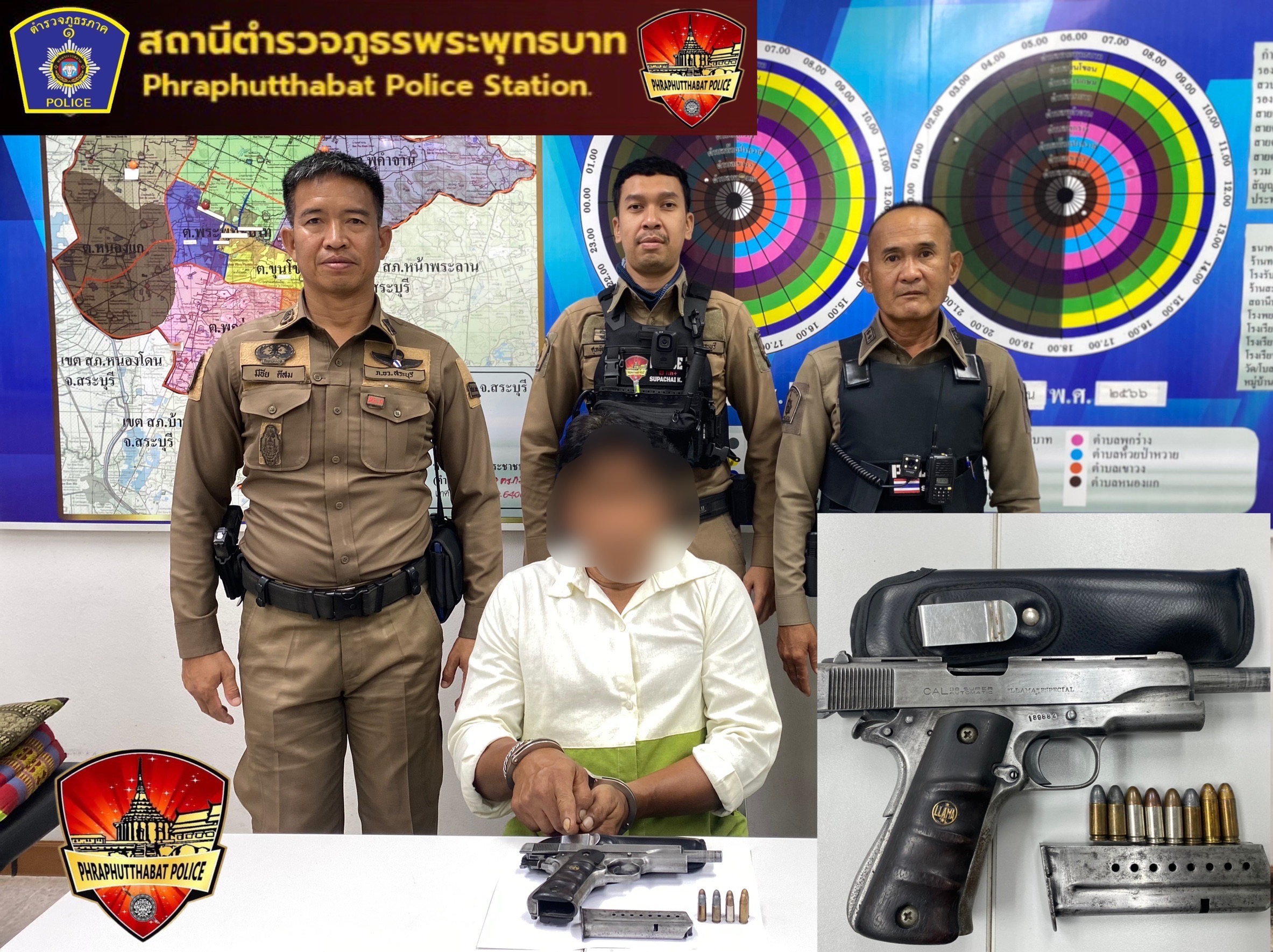 งานป้องกันปราบปราม สภ.พระพุทธบาท จับกุมอาวุธปืนและยาเสพติด วันที่ 20 พฤษภาคม 2568 ภายใต้การอำนวยการข