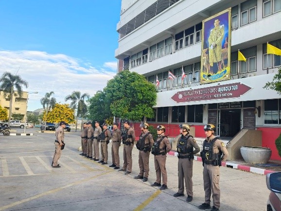อบรม ปล่อยแถว ตรวจเครื่องแต่งกาย อุปกรณ์ประจำกาย ตรวจความพร้อมก่อนปฏิบัติหน้าที่