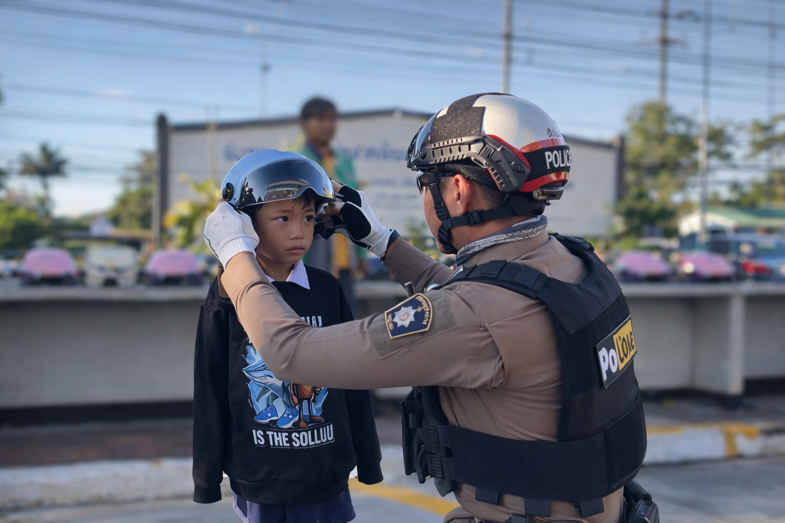 รับมอบหมวกกันน้อคจากภาคเอกชน เพื่อรณรงค์ส่งเสริมการสวมหมวกกันน้อค เพื่อความปลอดภัย ในช่วงเทศก