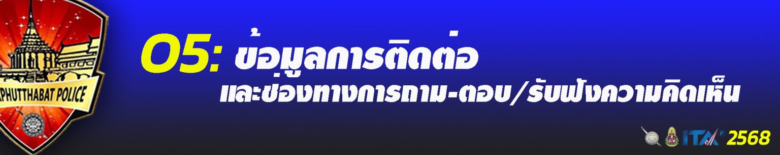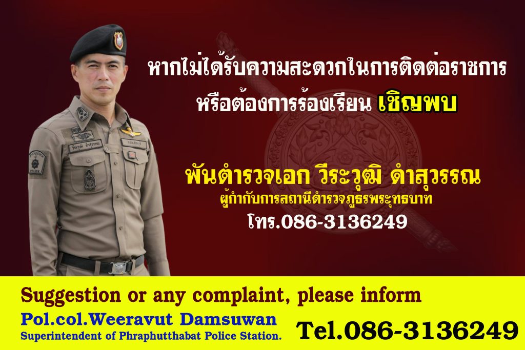 เว็บไซต์ : https://praputtabat.saraburi.police.go.thหรือ สำนักงานจเรตำรวจ 701/701 ถ.รามอินทรา แขวงท่าแร้ง เขตบางเขน กรุงเทพฯ 10220